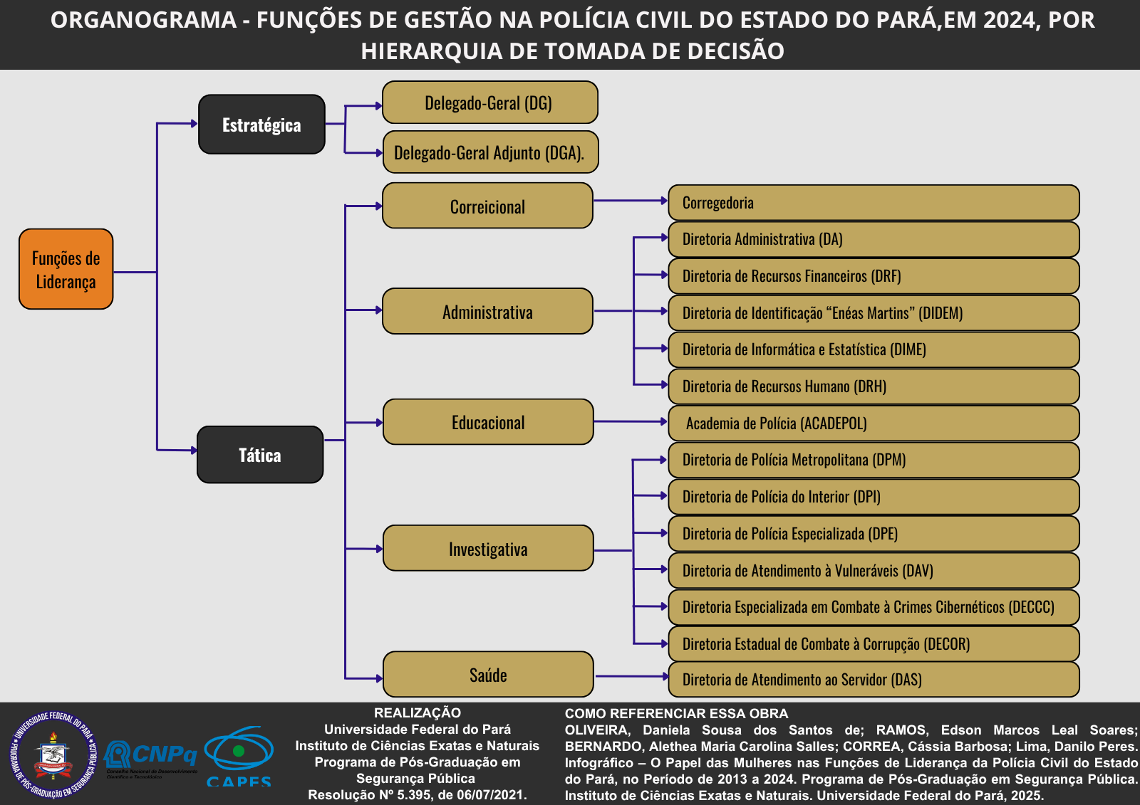Funções de gestão na Políci Civil do Estado do Pará, em 2024, por hierarquia de tomada de decisão
