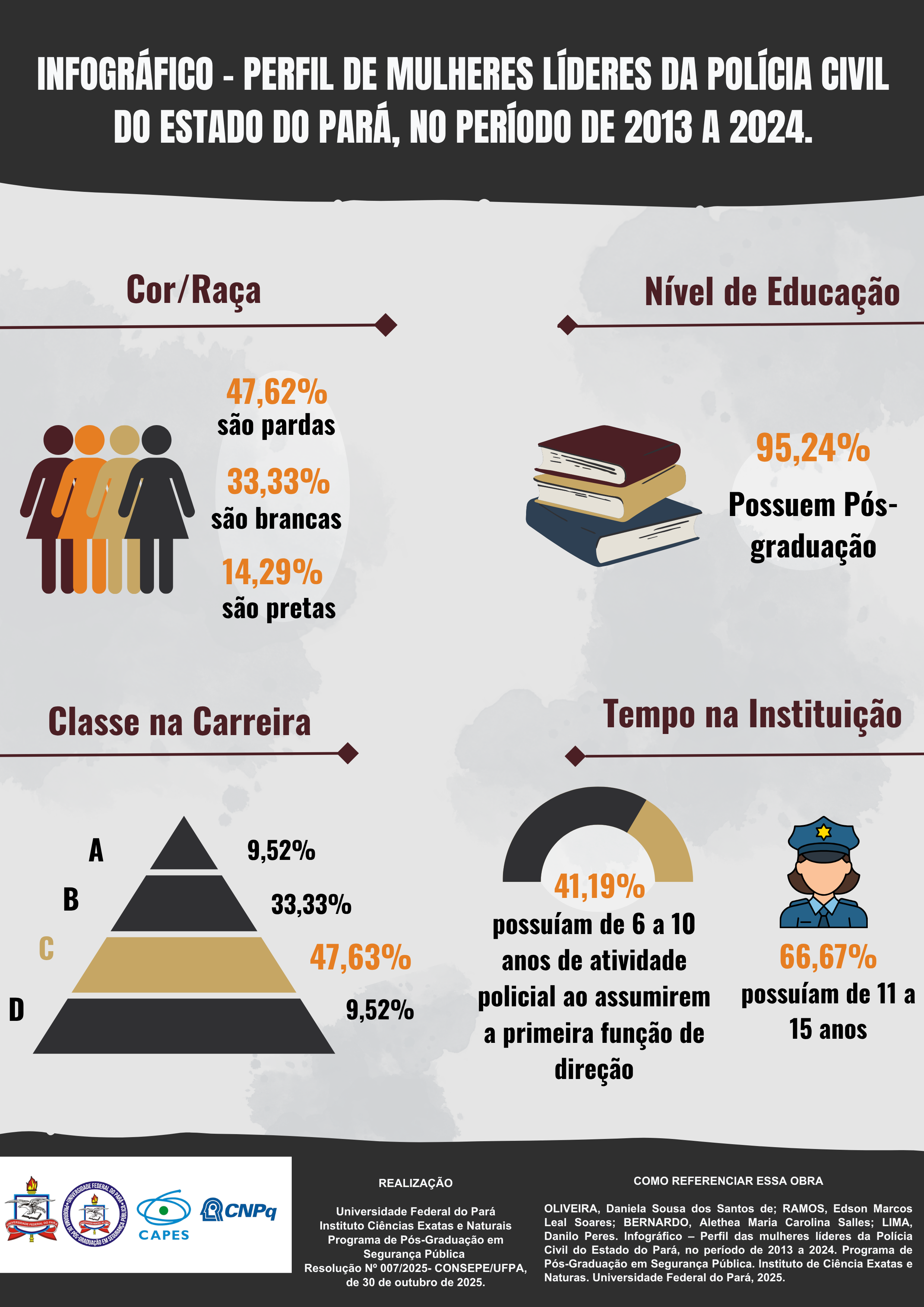 infográfico - Perfil de mulheres líderes da Polícia Civil do Estado do Pará, no período de 2013 a 2024