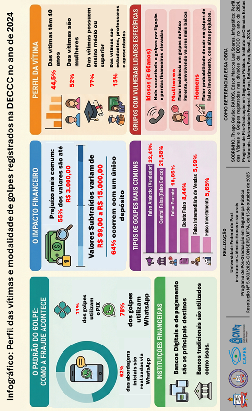Infográfico - Perfil das vítimas e modalidades de golpes registrados na DECCC no ano de 2024.